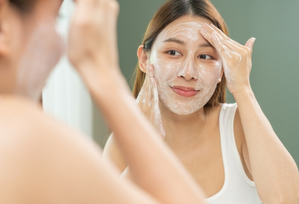 - Rửa mặt với sữa rửa mặt có các thành phần tốt cho da mụn như BHA (Salicylic Acid), Niacinamide hoặc Zinc.